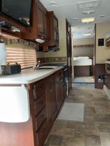This Class C is a 3010DS Forest River Sunseeker. If you’re looking for an RV rental in Florida that’s easy to drive and spacious, look no further. This camper drives like a moving truck rental – you don’t need any special skills or truck licenses to get on the road.